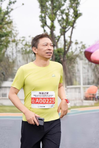 张朝阳完成半马首秀,雨中畅跑江阴地标赛道。