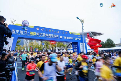 跑者们以奔跑之姿领略遂宁的城市风貌