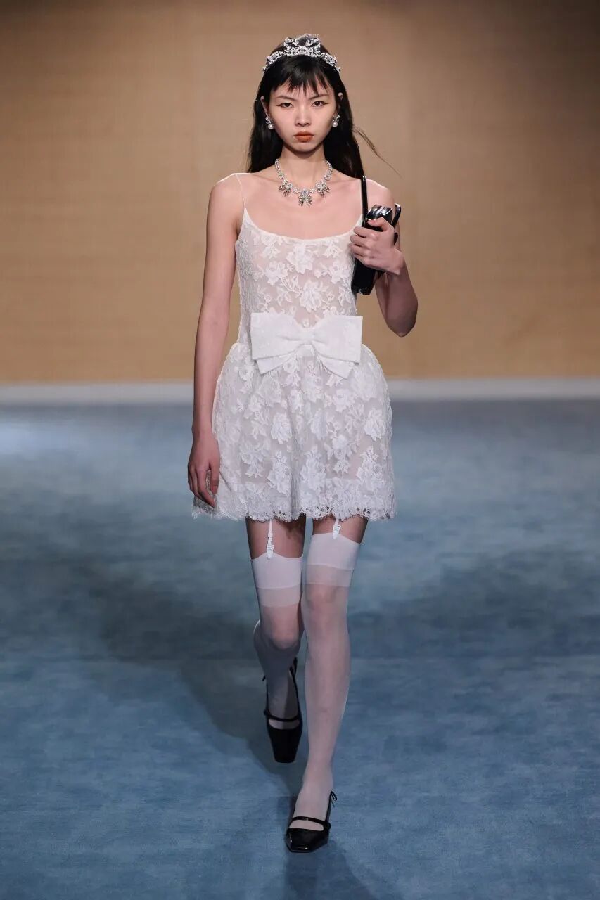 coquette可以译为娇俏的、美艳的女人,与之对应的穿搭风格被称为「风骚美学」。追求唯美浪漫是coquette的宗旨,与曾流行的balletcore有点相似,粉色、蕾丝等一些富有女性特征的设计元素贯穿风格始终,不过coquette更强调一丝小性感。