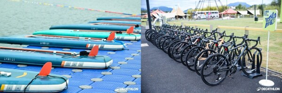赛前筹备采用"轻量化场地建设"模式,搭建材料选用可循环、低污染类型,避免过度施工对千岛湖生态造成影响;赛事所需的桨板、皮划艇、山地车装备等,均来自迪卡侬成熟的租赁服务体系。通过"使用而非占有"的模式,既减少装备闲置浪费,又降低大众参与运动的经济门槛;赛事结束后,包括匹克球场、羽毛球场在内的临时设施及相关运动装备,将被转运至迪卡侬全国范围内的运动社群与线下门店,继续用于日常活动与运动教学,形成完整的"资源—使用—循环"闭环。