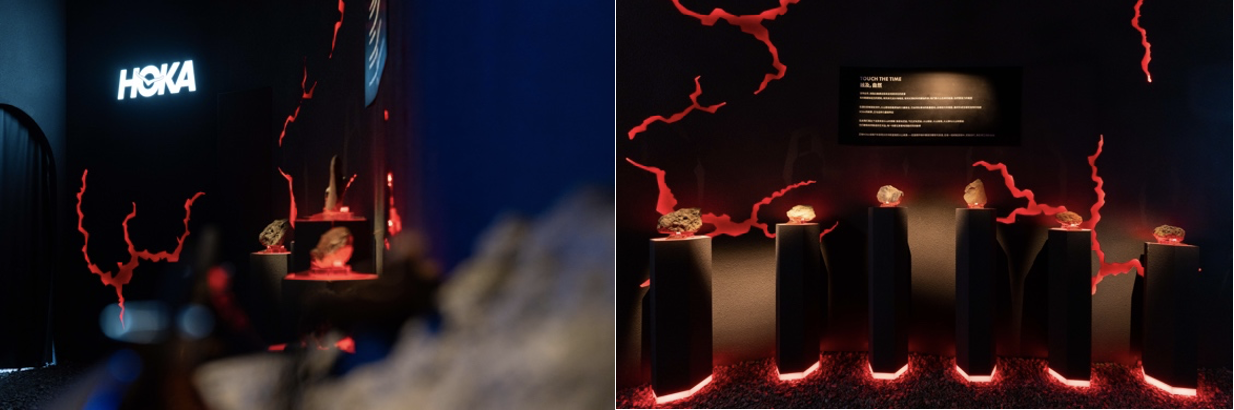 伴随着代言人井柏然的专属语音导览,城市冒险家们一同徒步山野,探索内心真我,感受“炽热且沉静”的双面故事:在这里,可以听见狂风、雷电与鹰鸣的荒野合奏,也可以闻见苔藓的清幽、火山石的微咸矿物感,与浆果危险而甜美的独特气息;指尖所触,是地球深处的故事——致密玄武岩、气孔状玄武岩等火山岩,诉说着大地炽烈的记忆……来体验的城市冒险家们纷纷表示:这是第一次近距离感受火山石,这场身临其境的感官体验令他们心向往之,纷纷于HOKA FILM定格与井柏然共同徒步的自然记忆。
