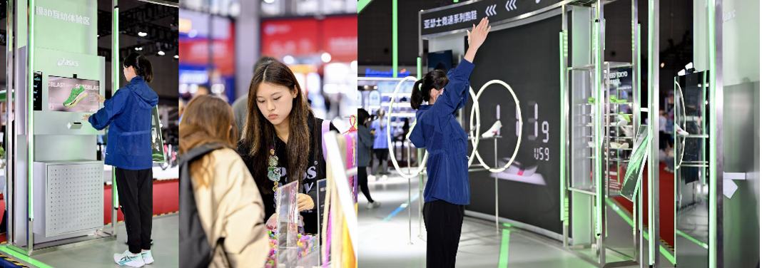 ASICS亚瑟士展台化身为动感体验空间,通过AI智慧终端获取定制运动报告;裸眼3D装置直观呈现产品的科技内核与设计巧思。现场特别打造的DIY工作坊,更吸引观众亲手制作专属纪念,在创意与运动的交融中,收获独特观展回忆。