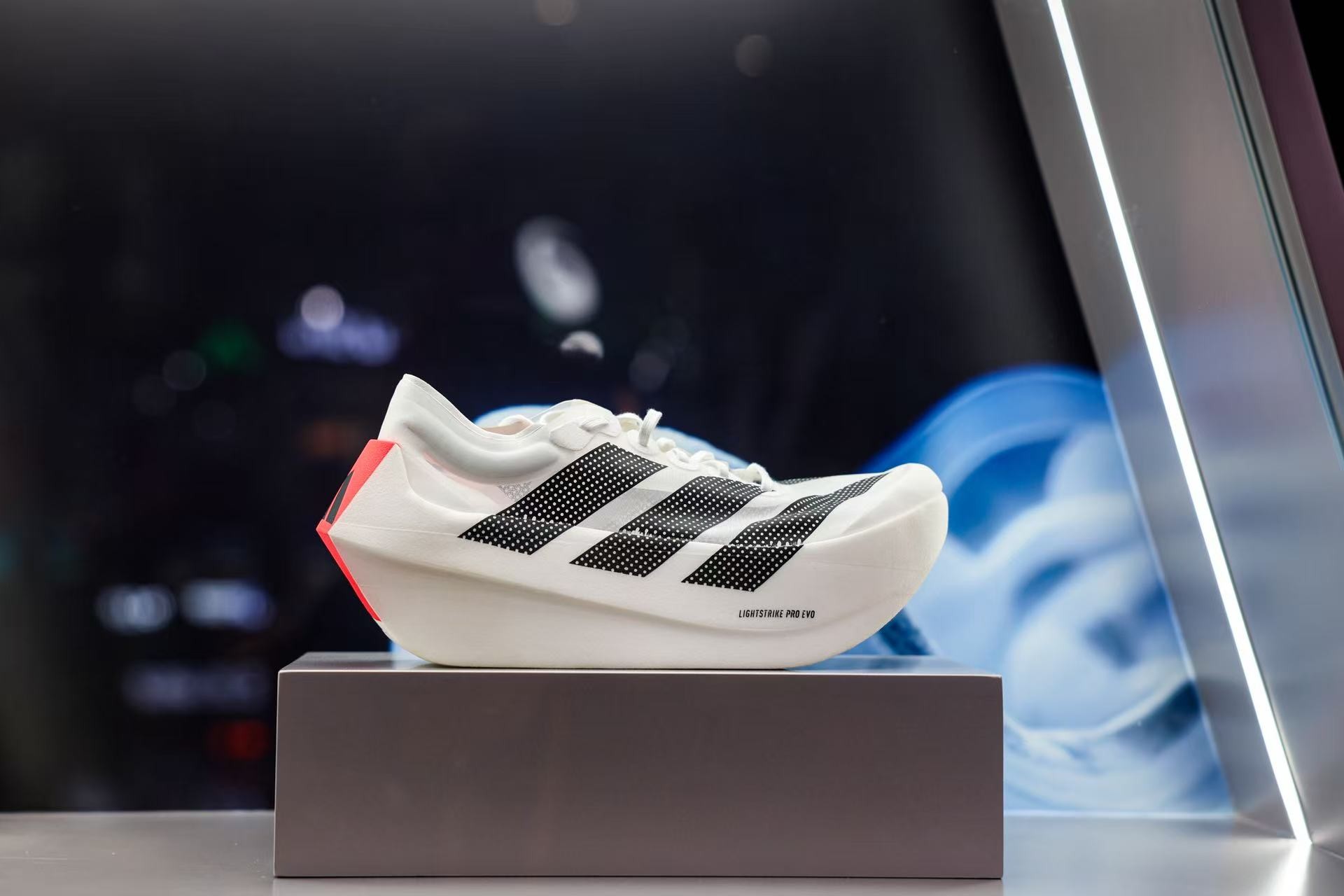 该展区的最大亮点,是首次在进博会亮相的阿迪达斯最新竞速创新成果——ADIZERO PRIME X EVO。该跑鞋是阿迪达斯专为突破人类耐力极限研发的定制装备,采用超厚中底设计,搭配生物力学支撑结构,以最大化跑步经济性,助跑者突破个人最佳成绩。