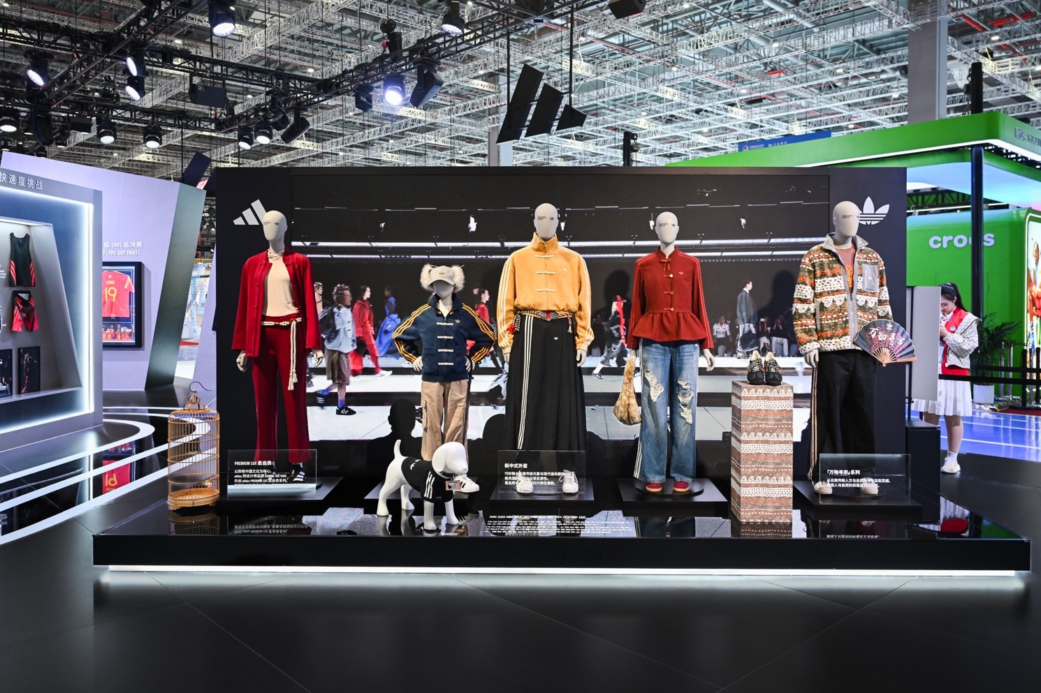 本届进博会上,阿迪达斯开辟“可共情”的文化共创区,全面展示上海创意中心为中国排球队、中国国家武术队、田径名将石雨豪、上海女足、中国中学生足球国家队等打造的专业装备,以及与清华美院合作打造的“清华共创”系列、为中国国家武术队设计的战袍,更秀出了新中式、PREMIUM LUX柔自贵、万物寻宗、三叶草宠物等“中国创造”系列产品,还为现场观众提供“创意由你”(MADE FOR YOU)个性化定制服务。