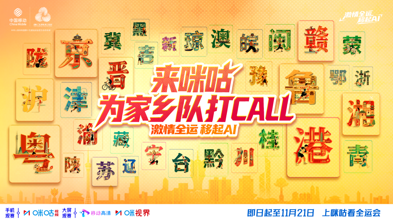 11月9日,第十五届全国运动会将在广州盛大开幕。这场全国最高水平的体育盛会,将首次以粤港澳三地联办的全新姿态,在大湾区绽放璀璨光芒。中国移动为本届全运会官方合作伙伴,咪咕作为官方持权转播商,将全程进行赛事直播,以科技重塑观赛体验。来咪咕为家乡队打call,共同见证荣耀时刻!