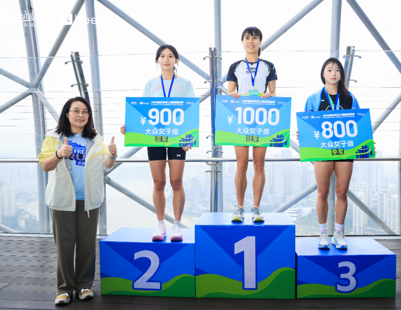 凯德投资(中国)华南区商业管理董事总经理邱海燕为登高赛大众女子组前三名颁奖