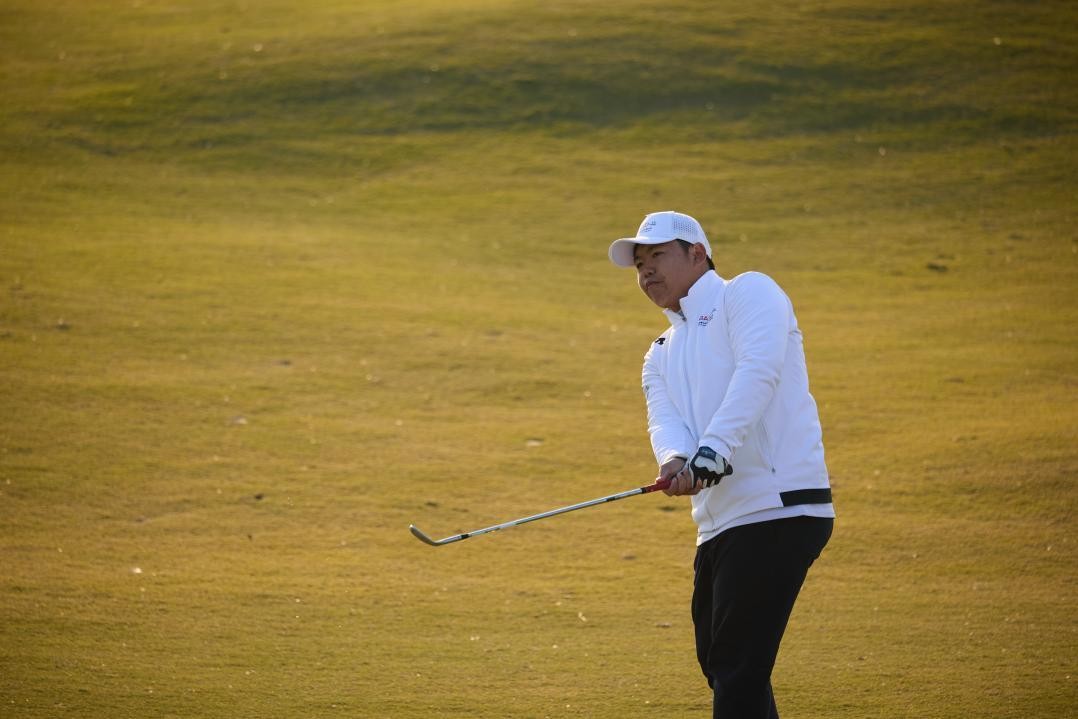 国青队队员李政达今天从1号洞出发,共有3只小鸟入账,也吞下了3个柏忌和1个双柏忌,最终以74杆(+2)完赛,一杆优势领跑男子A组。“今天我的策略执行得挺好的,有些洞开球有点问题,导致第二杆不太好打。然后有两个三推吞了两个+1。”赛后李政达表示,他平时会在球包中放15支杆,其中2号铁和小鸡腿根据球场和天气情况进行选择,因为这两天风比较大,所以他在本场比赛选择了更适合打出低飞球的2号铁杆。“大家同组氛围很好,但成绩都不够理想,接下来还有可以继续加油的空间。”