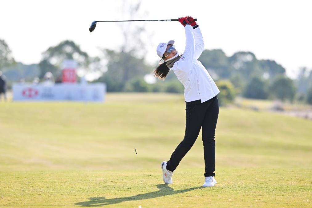 国青队队员崔景涵经历了相当起伏的一轮,她抓下4只小鸟,也吞下了7个柏忌,以75杆(+3)完赛。与同样交出75杆的王予祯一起排在并列第2位。