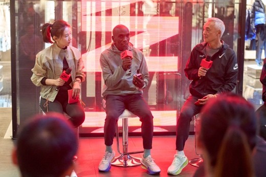 上马赛事前夕,基普乔格第五次到访中国,在耐克分享会上,他向耐克破速之队成员、耐克黑马、NRC跑者和教练,以及耐克上马配速员等讲述了关于训练心态与备赛的理念,鼓励跑者以更积极、更坚定的姿态迎接上海马拉松的挑战。