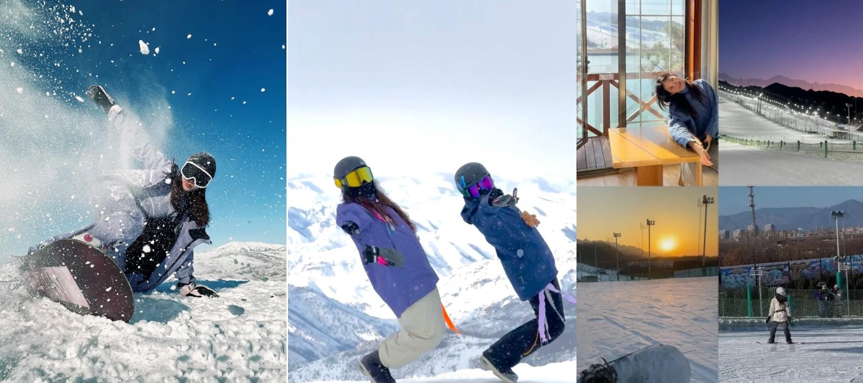 除此之外,还有与度假结合的滑雪之旅、精心搭配的“开板OOTD”、“雪服OOTD”,内容层出不穷,丰富多样,主打一个“不会滑没关系,但不能少了朋友圈”的轻松态度。简言之,“轻装滑”就是让滑雪突破运动范畴,轻盈地走进生活中,兼具运动性、创意性与观赏性。
