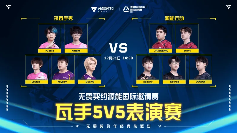 12月21日总决赛前还举办了多场端手游表演赛。在《无畏契约:源能行动》手游表演赛中,不同赛区选手混编为“来瓦手秀”队和“源能行动”队,首次来华体验“瓦手”的G2选手Jawgemo与trent“上手”神速,首秀都收获了王牌精锐的精彩时刻。