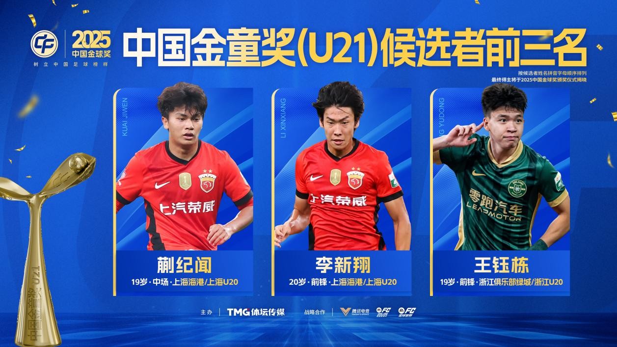 2025中国金童奖(U21)前三名:蒯纪闻、李新翔、王钰栋