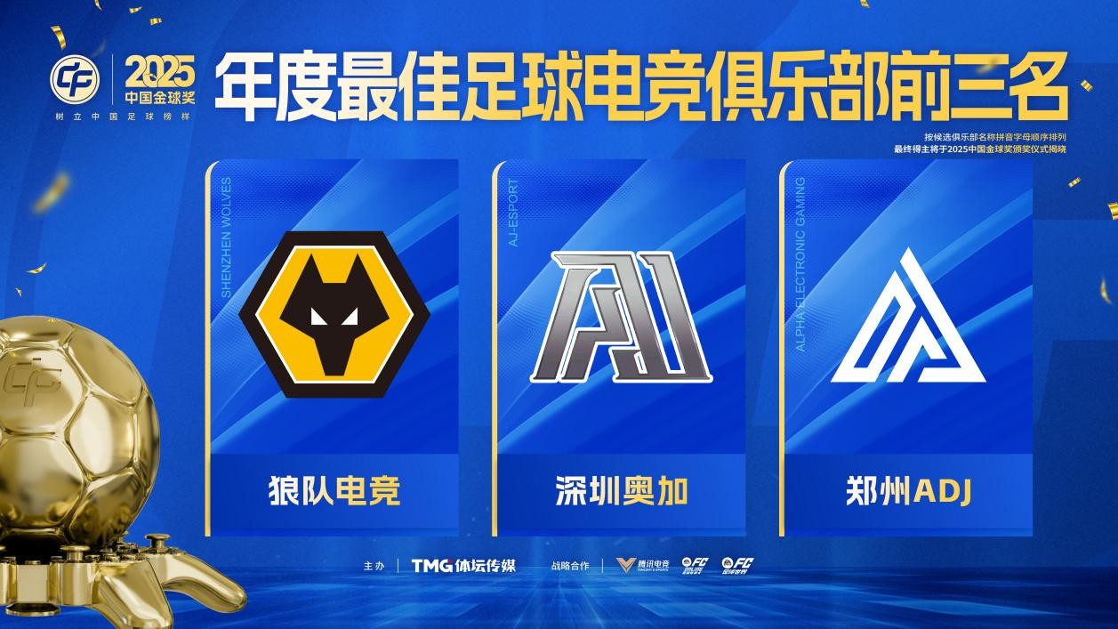 2025年度最佳足球电竞俱乐部前三名:狼队电竞、深圳奥加、郑州ADJ