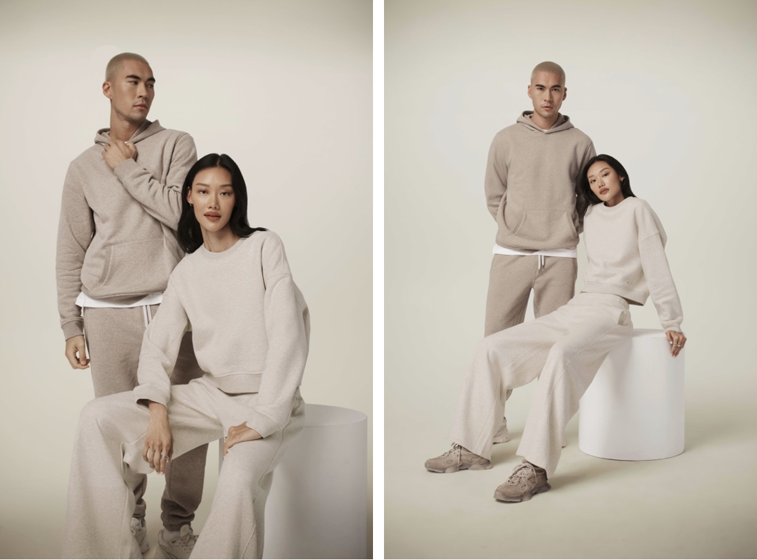 图中产品:Seaside系列男士抓绒卫衣与男士长裤、Restore女士休闲套头衫卫衣与松紧阔腿运动长裤