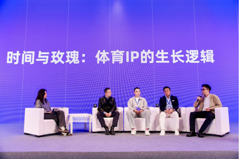 在主持人、制作人刘语熙的主持下,众辉体育创始人、NYBO青少年篮球公开赛发起人陆浩、前中国男足队长、山东鸽雁体育文化传播有限公司董事长冯潇霆、德甲联盟亚太区负责人Head of APAC Bundesliga International Mr. Kevin Sim,万达体育内容及新媒体负责人刘学昊带来圆桌分享“时间与玫瑰:体育IP的生长逻辑”。