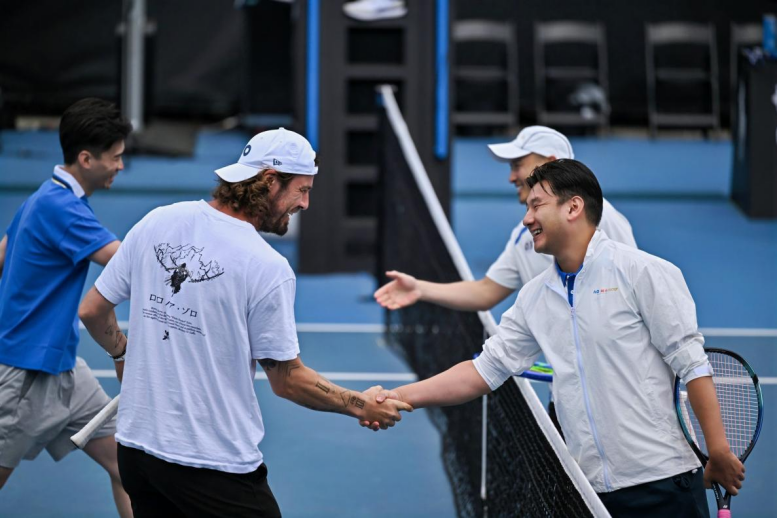 比赛延续了“大满贯”级别的高标准体验,从专业的裁判团队到全方位的赛事服务,让业余球员们得以沉浸式感受职业赛事的氛围。最令人振奋的是,深受中国球迷喜爱的网坛传奇——2005年澳网男单冠军马拉特·萨芬也惊喜现身,他不仅和业余挑战赛选手们分享了自己对网球运动的理解,更表达了对国窖1573澳网业余挑战赛的欣赏:这一赛事平台让网球的影响力跨越国界,超越职业与业余的限制,正如网球运动本身也不止于竞技,更是乐趣所在。随后萨芬与唐栋良互赠礼品,双方互赠的签名网球与国窖1573澳网纪念版产品也成为中澳体育文化交流的珍贵见证。