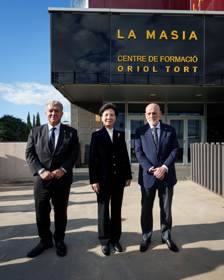 巴塞罗那时间2026年2月4日,在西甲联盟与巴塞罗那足球俱乐部的共同邀请下,由国务委员谌贻琴率领的中国代表团近日到访巴萨青训基地拉玛西亚。本次参观以“了解西甲成功青训体系的运作模式”为核心,聚焦这座国际公认的青训标杆基地——拉玛西亚,探究其如何通过系统化的培养机制持续输出世界顶级年轻球员。