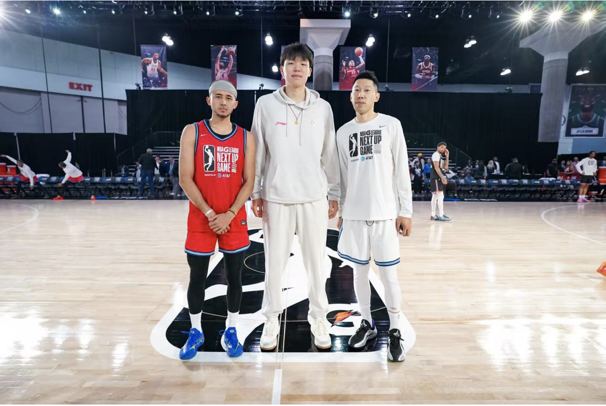杨瀚森与两名中国球员合影