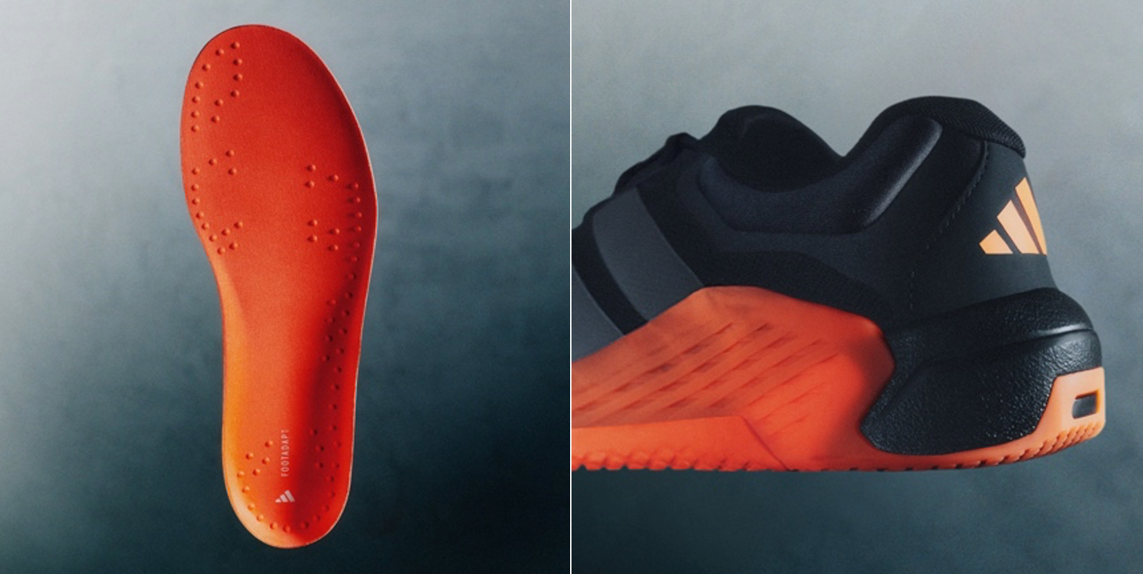 DROPSET 4在设计细节上同样体现专业考量,随鞋附赠的 FOOTADAPT 鞋垫旨在帮助训练者增强足底感知,帮助训练者更好感受身体运动;GEOFIT 填充海绵则有效锁定脚踝,在高强度发力时提供稳定支撑,让训练更安全自如。