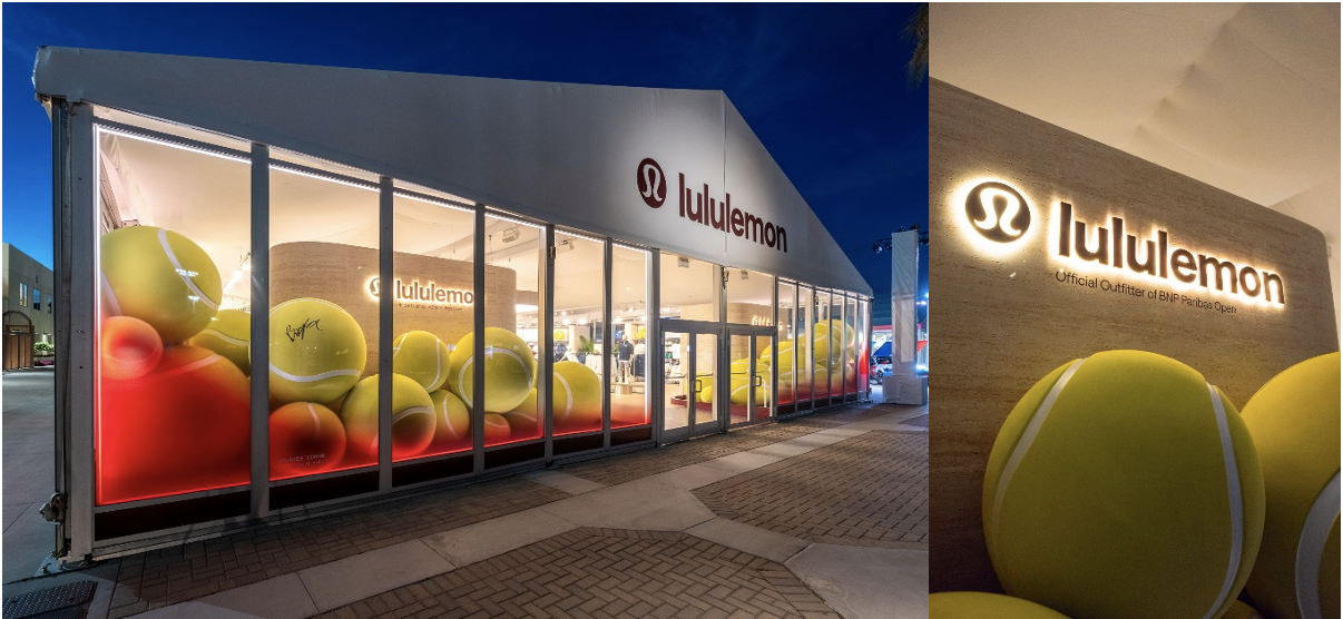今年三月,作为在美国印第安维尔斯举行的巴黎银行网球公开赛 ( BNP Paribas Open ) 的官方服饰合作伙伴,lululemon为超过2000名赛事志愿者、官员及球童提供官方服饰。与此同时,lululemon在赛事现场为球迷打造了超700平方米的快闪空间,丰富的产品选择与特色的巨型立体网球装置,吸引了众多球迷驻足体验。