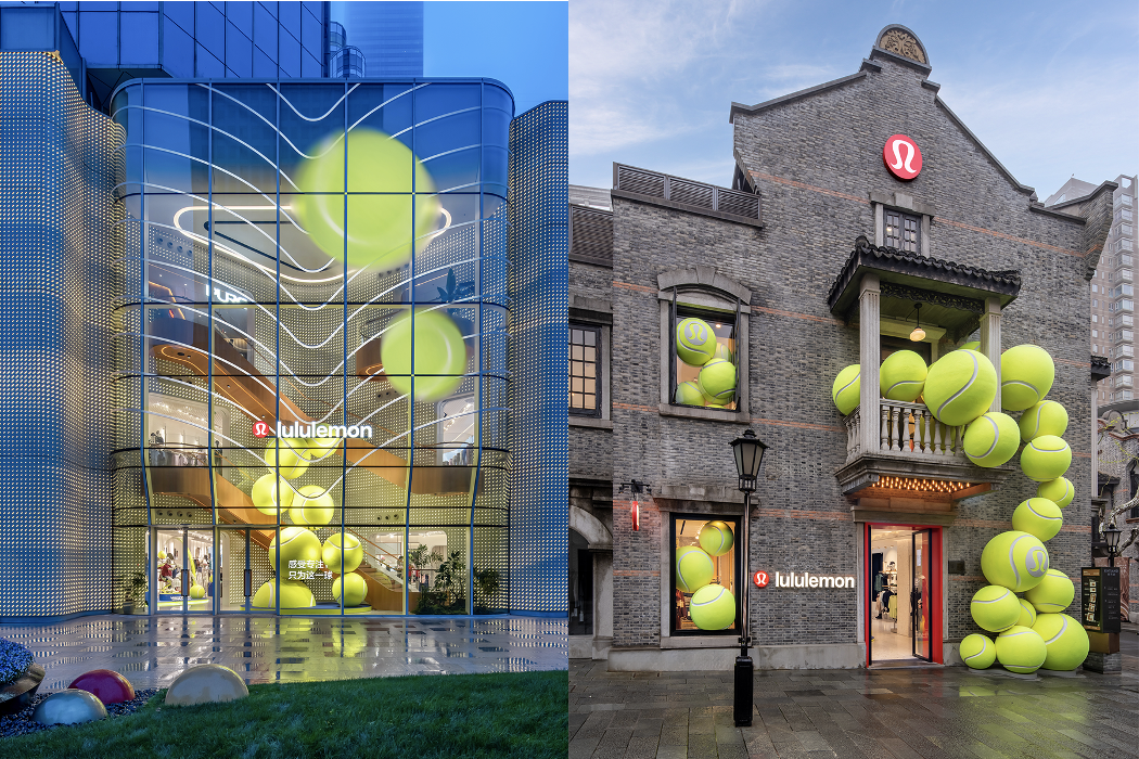 春季网球系列焕新之际,lululemon首次在中国大陆门店打造创意网球主题橱窗,并以网球运动中的“心流”时刻为灵感,将印第安维尔斯现场快闪空间的巨型网球设计,以更具视觉冲击力的动态造型延续至上海静安嘉里中心及新天地门店,带领客人沉浸于“只为这一球”的专注时刻。
