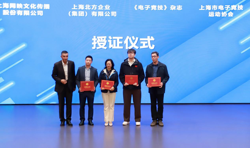 随后,中国音像数字与出版协会第一副理事长张毅君先生为上海北方企业(集团)有限公司、《电子竞技》杂志、上海市电子竞技运动协会、上海网映文化传播股份有限公司这一批在高校电竞组织、传播、保障等方面作出积极贡献的代表单位颁发证书。