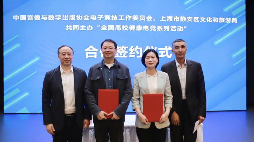 中国音像与数字出版协会副秘书长、电竞工委主任委员唐贾军与上海市静安区文化和旅游局党组书记、局长胡慧芬在到场领导、嘉宾与学者的见证下,完成了全国高校健康电竞系列活动的合作签约。