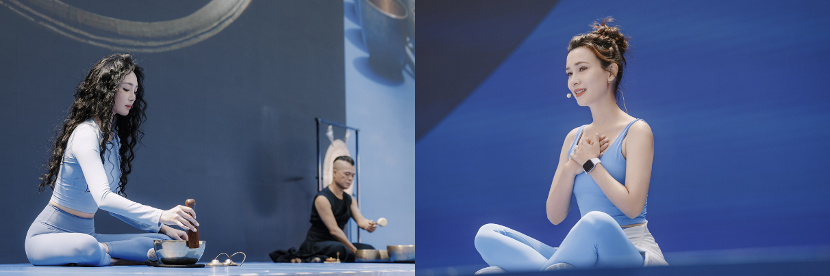 左:lululemon品牌大使王紫璇与颂钵艺术家曾文通合作颂钵听心课程