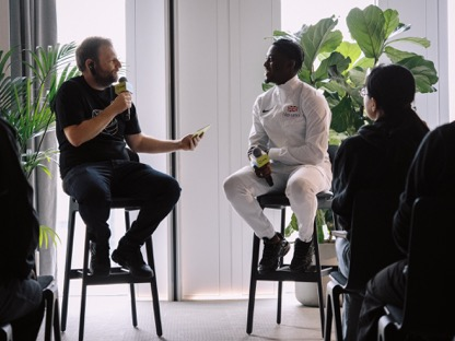 在耐克伦敦办公室,耐克全球青少年运动公益负责人暨耐克欧洲公益部资深总监Dan Burrows以及总监Heta Fell向老师们介绍了耐克在英国开展的青少年运动公益项目。英国田径名将Jeremiah Azu也亲临现场与老师们进行面对面的交流互动,他讲述了从社区俱乐部到国际赛场的成长故事,以亲身经历阐释体育如何塑造坚韧心态和多元思维,并邀请体育老师们共同激励下一代,让青少年尽早认识到运动对身心发展的重要价值。