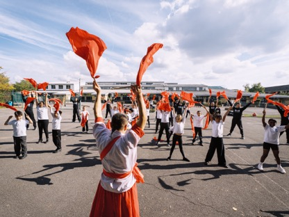 当铿锵有力的安塞腰鼓在英国小学的操场上敲响,当“交叉步”配上萌萌狮头“闯入”英国小课堂,当一根小小的跳绳化身为“哪吒”脚下的“风火轮”,跨越语言障碍,一场关于中英体育教育的“共创”活动正在发生。2025年国庆期间,70余位来自中国的优秀体育教师、校长和教研员组成的“2025活力校园国际交流团”来到英国,带着中国体育教育的实践智慧与亟待解决的“真问题”,与英国同行们开展了一场深度互学互鉴。
