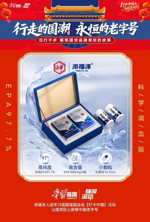 诞生于1943年的新华制药,是新中国第一家化学合成制药企业,也是全球重要的解热镇痛药生产和出口基地。企业恪守“药品质量关系人的生命”的准则,将制药级标准延伸到健康消费品领域,其打造的“添福泽”高纯度鱼油品牌,EPA实测纯度达97.7%,有效降低血脂,展现了老字号在新时代的创新活力。
