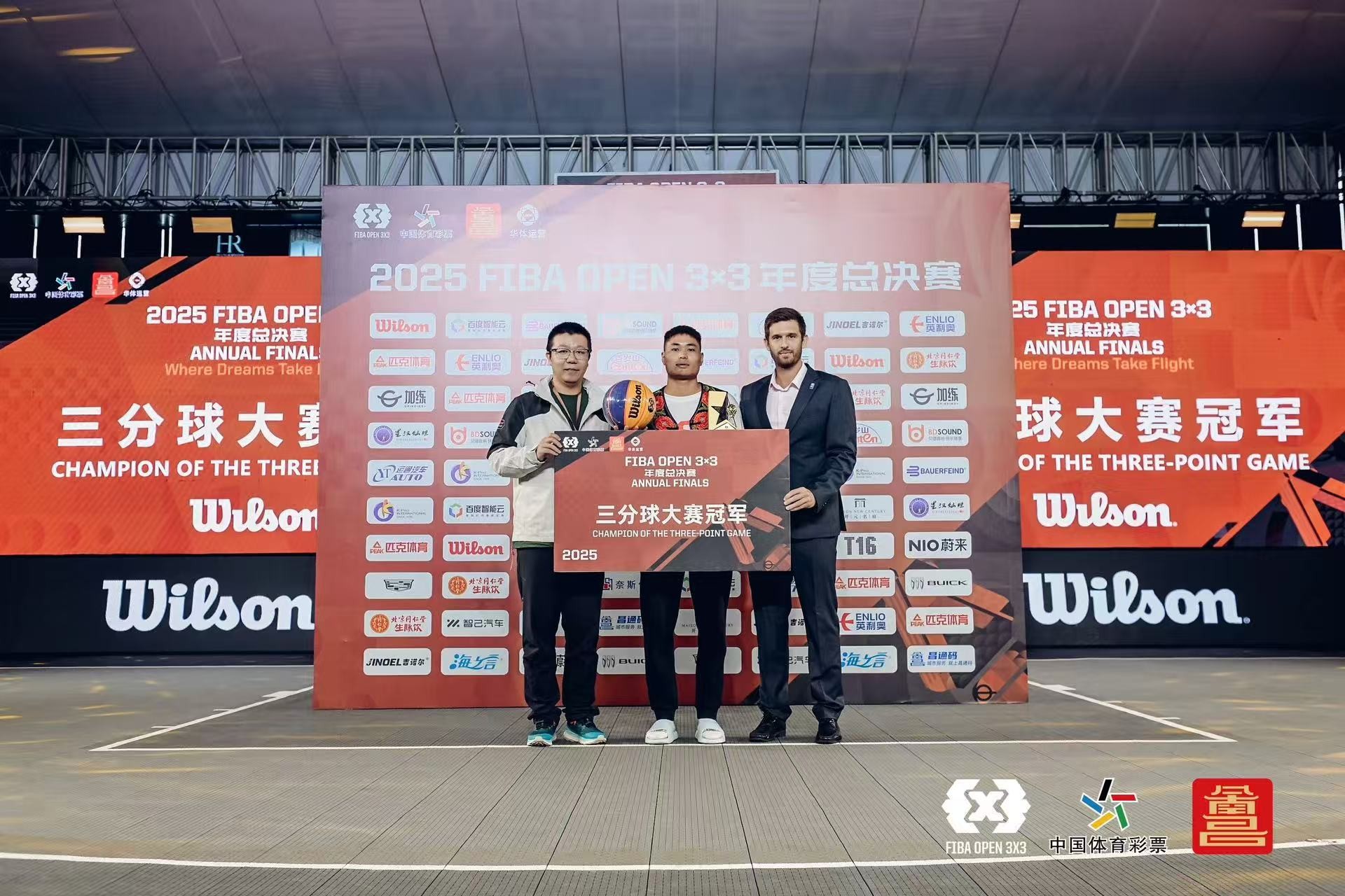 三分球大赛冠军 由来自云南禄劝篮协的邝松山夺得,其稳定的投射令人赞叹。国际篮联中国区技术发展部总监夏米为其颁发冠军奖杯,威尔胜市场营销经理施恺亮为其赠送了赛事指定用Wilson篮球。