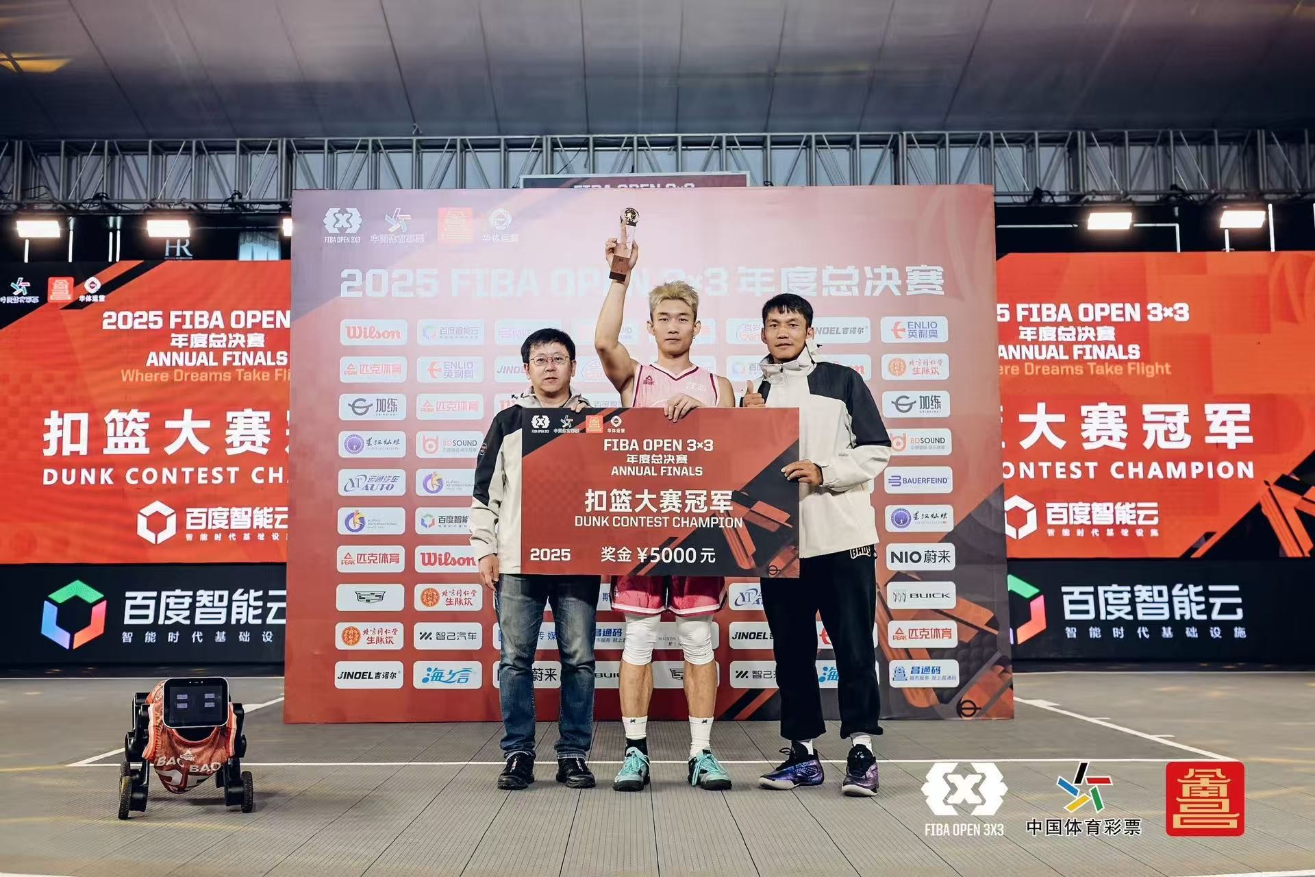 扣篮大赛冠军 由表现无懈可击的 赵旭 获得。前CBA扣篮大赛冠军矣进宏先生亲自为其颁发了冠军奖杯,百度智能云泛科技体育解决方案总监刘川随后为其颁发了5000元冠军奖金,象征着拼搏精神的传承与荣耀。