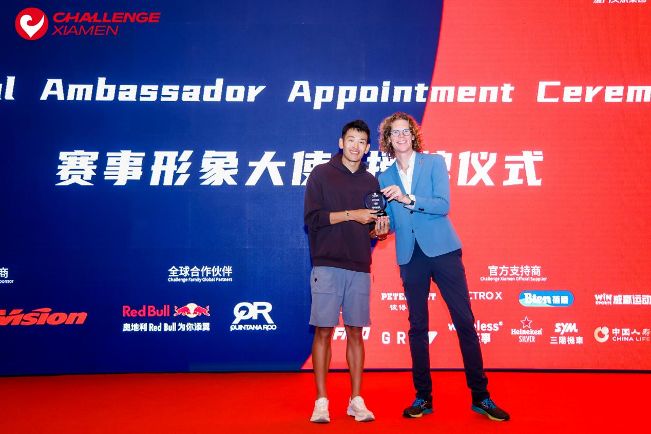 比赛前一天的“铁人之夜”上,苗浩正式被授予 2025 Challenge Xiamen 厦门铁人三项公开赛 “赛事形象大使” 称号。此次亮相,他的身份早已超越单纯的参赛选手 —— 更肩负起铁三赛事精神传播的重要使命,而这正是他多年来始终践行的责任与担当。