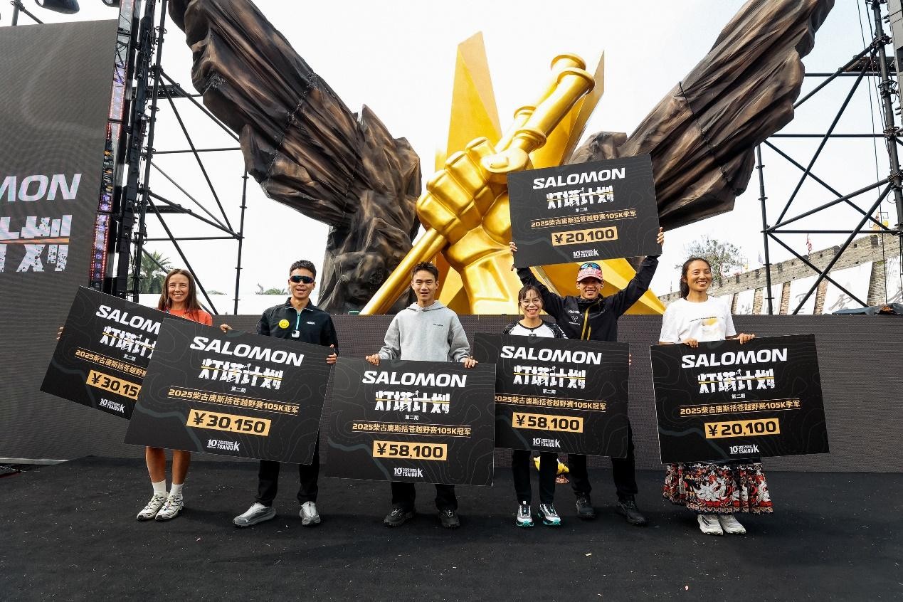 伴随着灯塔计划第二期高额奖金的吸引、柴古更加国际化的赛事体验设置,来自中国、瑞士、法国、西班牙、日本等多个国家的跑者齐聚柴古,共同参与这场越野盛宴。本次SALOMON战队收获满满,其中雷米•博内(Rémi Bonnet)以1小时47分24秒的绝对优势赢得25K男子组冠军;50K组别范邦林和瓦尔瓦拉•希卡诺娃(Varvara Shikanova)分别以4小时14分33秒、5小时03分23秒包揽男女冠军;张火话以11小时19分49秒获得105K男子组冠军达成“三冠王”成就,将柴古唐斯的最快完赛成绩提升至全新高度;此外,迟令杰、法比安・维内罗(Fabian Venero)、杨军情、上田瑠伟(Ruy Ueda)、奥罗尔・达西耶(Aurore Dacier)、唐景燕、谢雯菲等选手亦在各自组别斩获佳绩,横扫领奖台,全面领跑赛场。