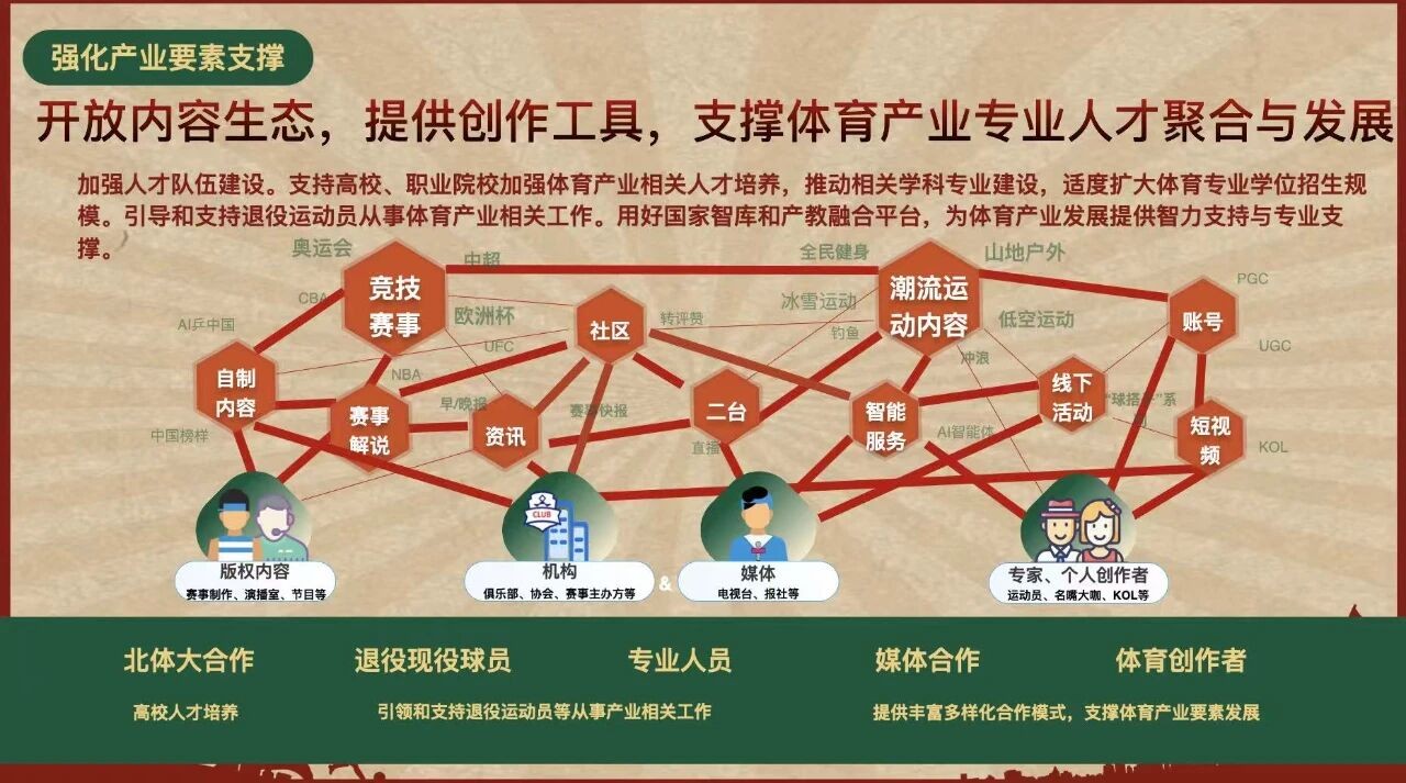 而咪咕社区给体育产业所带来的启发,还在于助力政策落地时,从产品供给、到人才建设,再到产业生态的一系列创新思维。