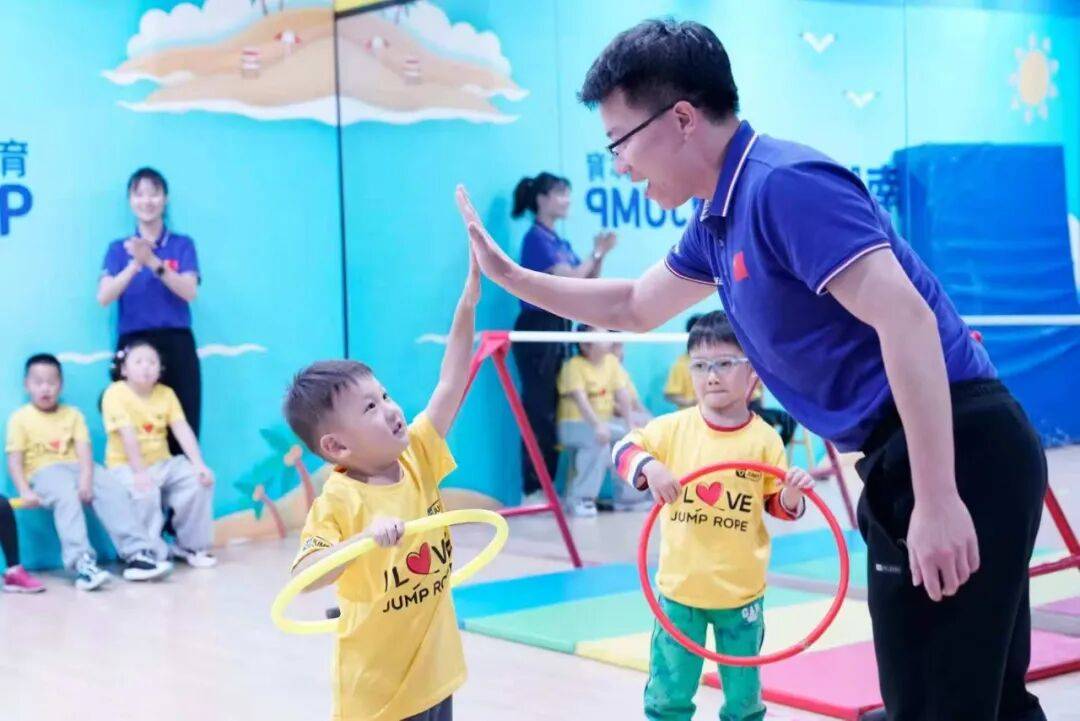 如果在周末走进跃动运动馆北京草桥馆,总能看到8-10位小朋友在2位老师的带领下,随着音乐练习花样跳绳的画面。