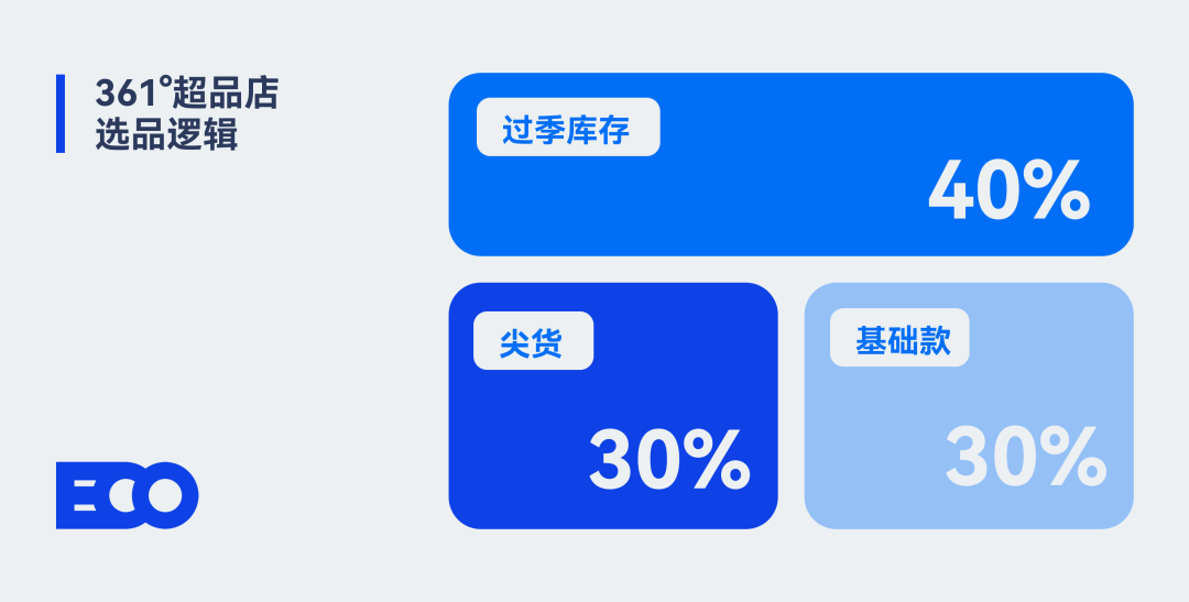 消费日报曾有报道称,361°超品店的商品逻辑为25%-30%的当季尖货吸引流量,30%-40%的高性价比基础款提升复购,40%的过季库存通过折扣加速周转。