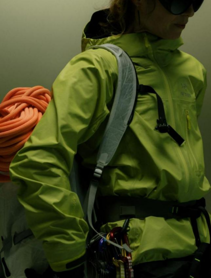 此次Alpha SL硬壳夹克涵盖男款Alpha SL Jacket和女款Alpha SL Anorak,均采用 20D 3L GORE-TEX PRO ePE Hadron™ 复合面料,具备优异防水透气性能;Hadron™ 结构在实现轻量化的同时强化耐磨表现,可有效抵御碎石、冰屑及绳索摩擦带来的损耗风险。专为攀登运动打造的结构与剪裁实现穿脱体验升级,显著增强活动灵活性与多层穿着状态下的舒适度,使攀爬、抬臂与技术动作更加顺畅,最大化行进自由度与操作效率。在与男款一致的攀登版型结构基础上,女款 Alpha SL Anorak 针对过往Anorak在穿脱体验上的固有局限进行结构优化,通过缩短衣长,并结合专为攀登打造的剪裁与相对宽松的版型设计,在保持攀登灵活性的同时显著提升穿脱效率,使其在高频穿脱场景下依然保持高效使用体验。风帽系统贴合头部轮廓结构,兼容头盔佩戴且不影响视线与动作路径,风帽内嵌 RECCO® 搜救信号反射器。细节配置上,轻量化的胸前拿破仑口袋,搭配魔术贴袖口与下摆调节系统,在收纳便捷性、防风性能与操作效率之间实现平衡;整体结构支持高度压缩收纳,男款 M 码仅重 232g,精准契合轻便快速阿式攀登装备的核心理念,适用于技术性攀爬、登山与绳索下降等多类高强度攀登场景。