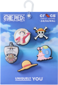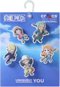 此外,Crocs x航海王合作系列同步推出多款主题Jibbitz™鞋花,其中海贼王路飞五件套包含千里阳光号、草帽、电话虫、草帽海贼标志以及路飞形象元素;海贼王五件套集结路飞、佐罗、娜美、乌索普和山治五位超人气角色;更有草帽海贼团全员经典造型的人物单粒,可自由组合搭配,轻松打造专属航海风格。
