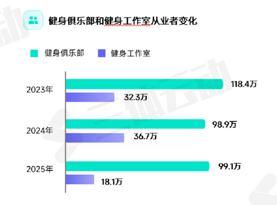 2025年中国健身行业从业者总数约为117.2万人,较上年继续下滑。其中: