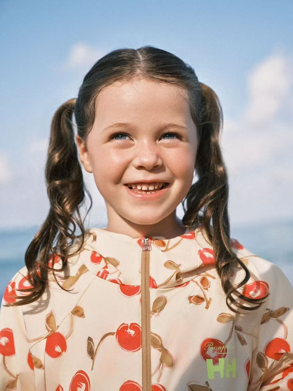 在设计语言上,Bonpoint × HELLY HANSEN 限定联名童装系列以双方标志性 Logo 的视觉碰撞,开启航海精神与巴黎左岸美学的对话。图案设计汲取 HELLY HANSEN 经典的帆船绳索为灵感元素,在户外基因与法式童真之间,建立起独特而平衡的视觉语言。印花则采用层次化工艺呈现,传递品牌精神的同时,亦温柔呵护儿童娇嫩肌肤。联名男童系列以蔚蓝色调勾勒清新海岸氛围,女童系列则在细节中点缀 Bonpoint 标志性樱桃图案,为利落廓形注入灵动童趣。