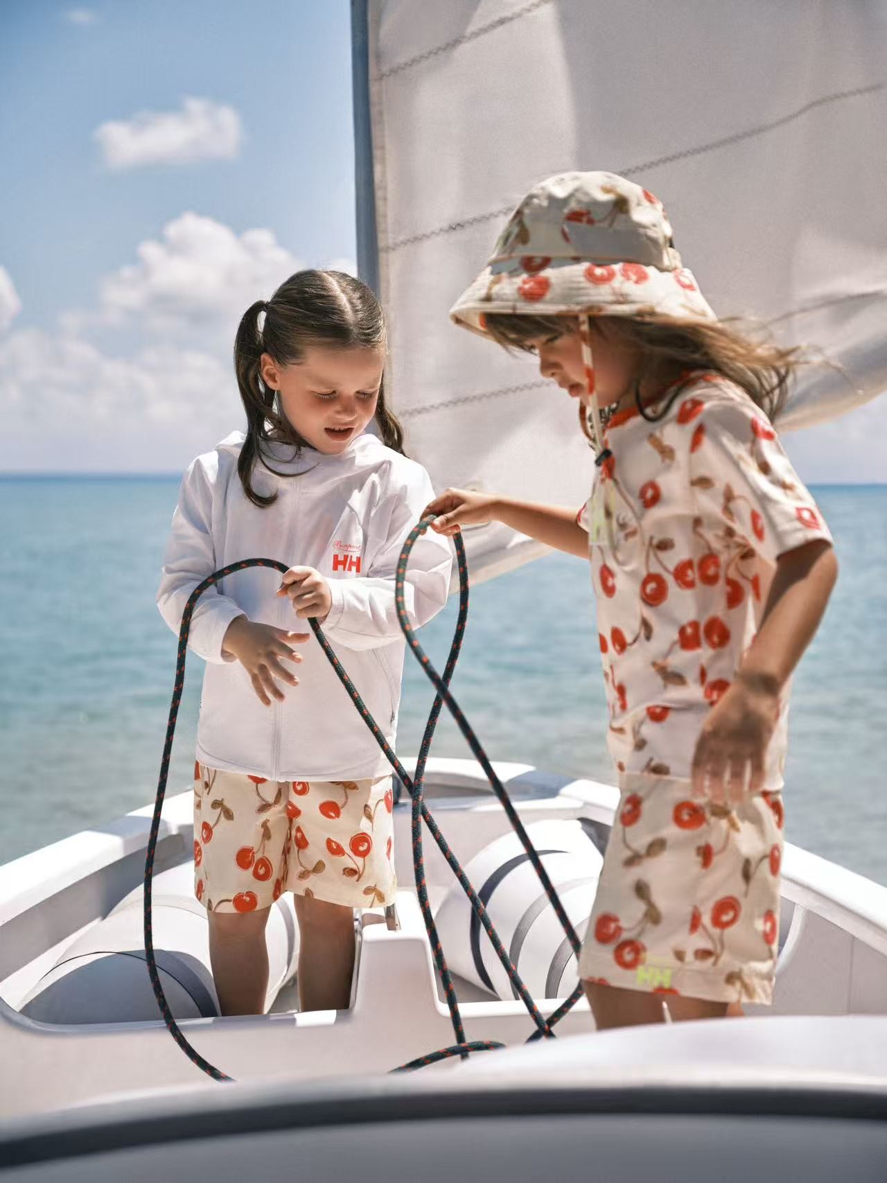 面料与功能设计则延续了HELLY HANSEN的专业户外基因,甄选四面弹力功能面料,赋予穿着者充分的活动自由度与舒适体验,并融入防晒功能,为孩子们提供周全守护。联名款T恤在具备UPF50+防晒基础上,拥有接触瞬间凉感与吸湿速干性能,夏日海岸尽情奔跑,也能保持干爽轻盈,让小小探险家们的每一次出航都无拘无束。