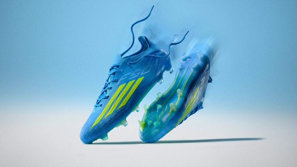 F50同样迎来活力新配色,电光蓝鞋面搭配霓虹绿色三条纹,潮酷撞色设计尽显疾速锋芒。战靴搭载FIBERTOUCH 轻羽系统,在关键部位提供轻量支撑与缓震防护,兼顾赛场性能与舒适体验;SPRINTWEB 蝉翼鞋面以高精度3D纹理设计,适配灵活盘带需求。COMPRESSIONFIT TUNNEL TONGUE 管道式鞋舌提供多方向高速运动所需的锁定感,搭配SPRINTFRAME 360大底,助力球员稳控步伐,迸发极致赛场速度。