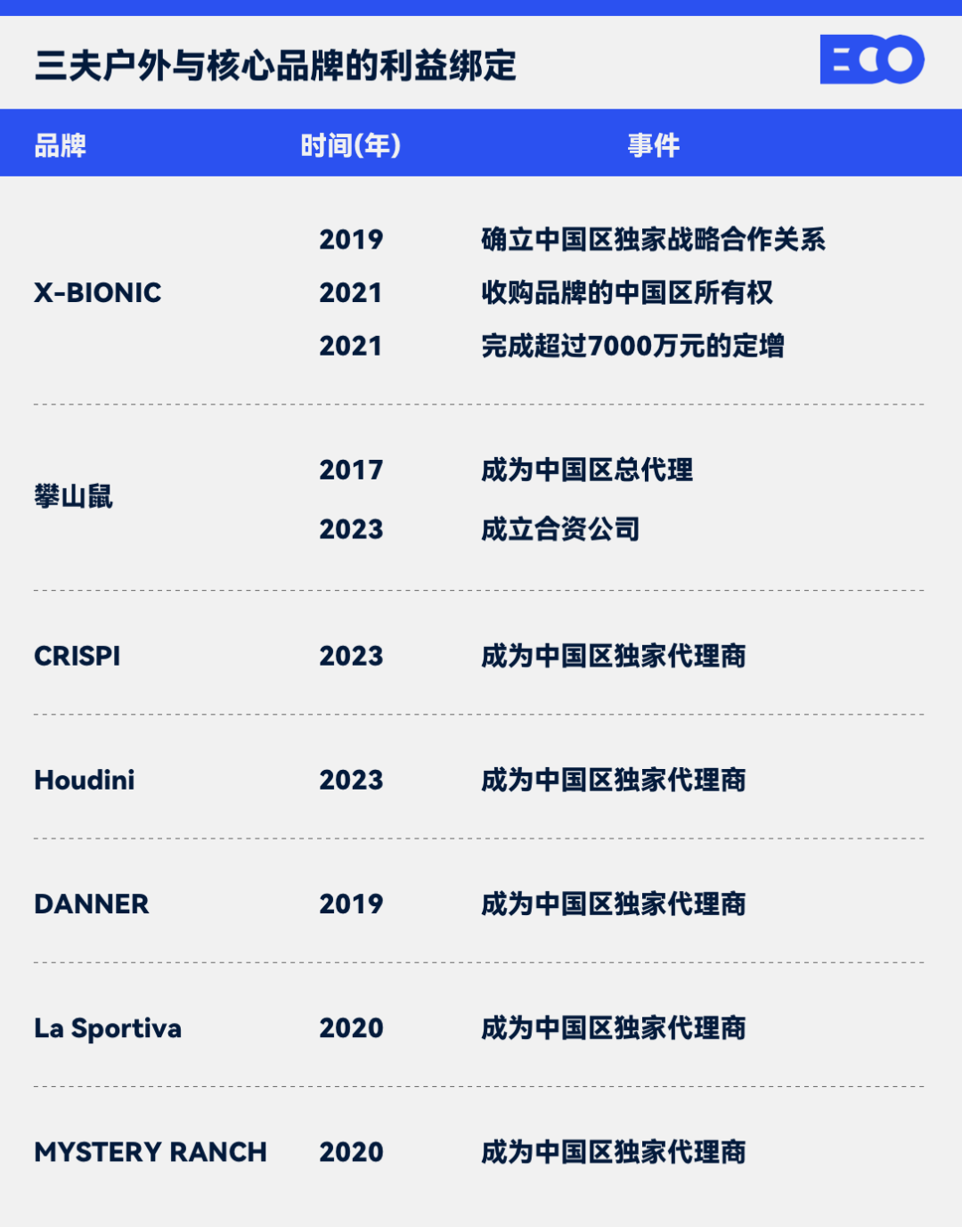 代理商面临的最大问题,就是当品牌在市场上运营壮大后对权益的回收。于是,从2019年开始,三夫就尝试通过收购、合资或者签署有深度约束力的长期合同,不断加深与核心品牌之间的利益捆绑,也让分散的精力有了聚焦点。