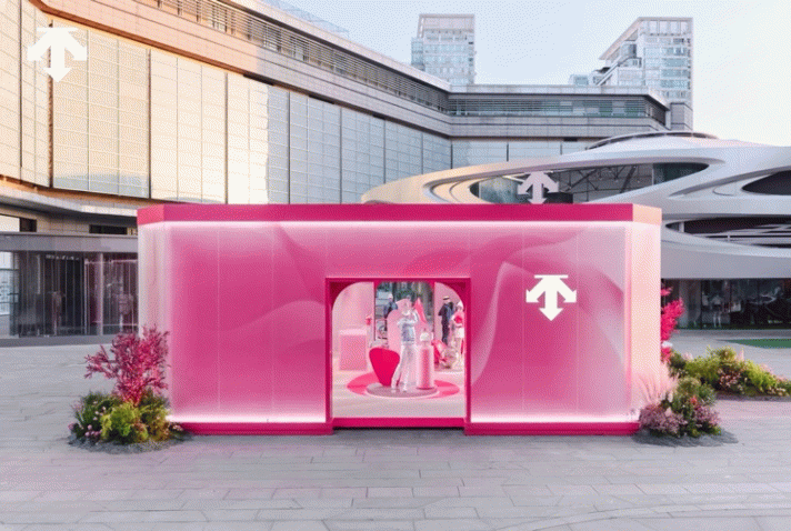 春日花海限时主题空间以明媚鲜艳的莓焰粉为视觉基调,层层铺展出一片生机盎然的能量场。设计形态上呼应迪桑特BODY FLEX系列产品标志性的“花苞”版型,在舒展之间传递出由内而外的生长力量。作为体验的起点,空间中特别设置“捕捉蓄能时刻”AR互动拍照与“平衡木核心绽放挑战”等互动环节,让参与者在沉浸体验过程中感知身体节奏,积蓄内在能量。