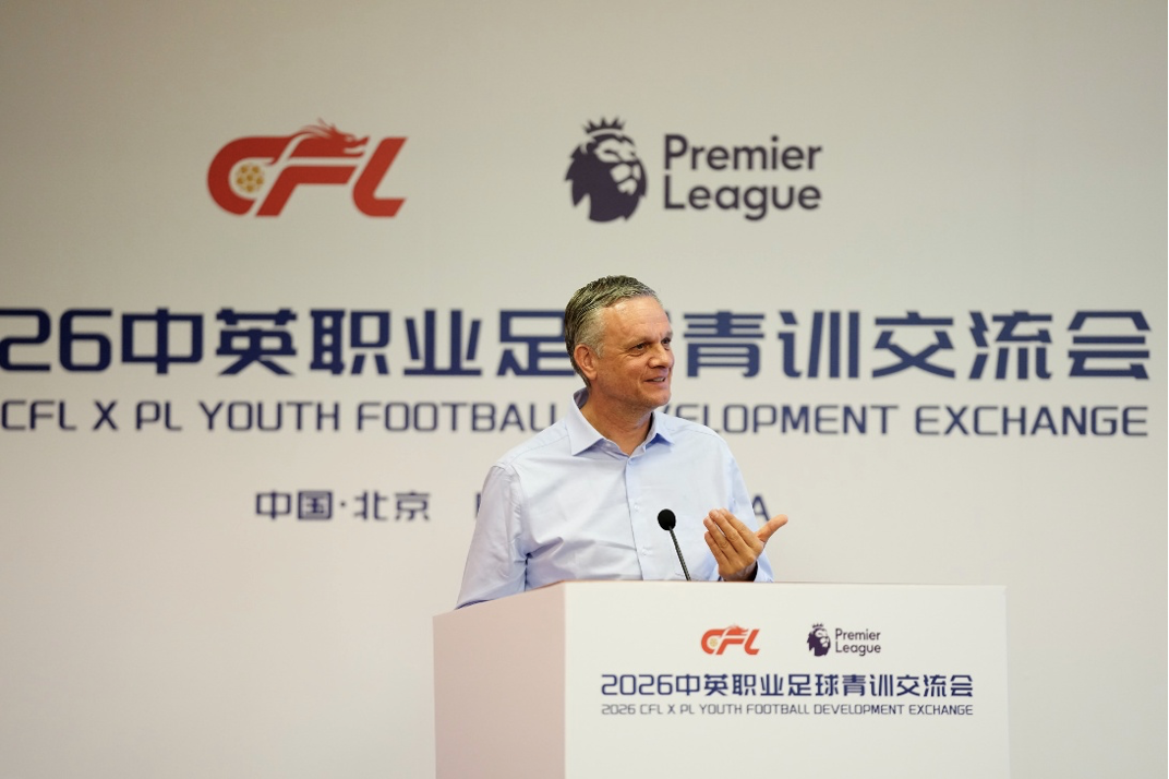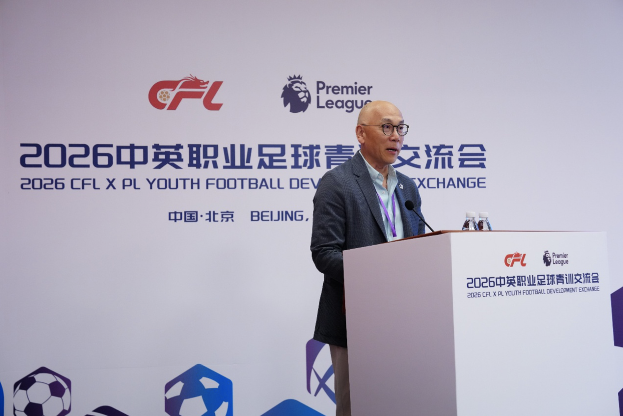 2026年4月10日,由中国足球职业联赛联合会(以下简称中足联)与英超联赛共同主办的“2026中英职业足球青训交流会”在北京举行。中足联理事长李克敏、副理事长杨旭、秘书长沈睿,英超联赛中国区董事总经理李嘉铭等双方代表共同出席。继2025年海口首届交流会后,英超青训专家再次与中国各级别职业联赛俱乐部代表相聚,就青少年球员成长环境、职业俱乐部青训体系建设以及U15球员迈向职业发展的成长路径等核心议题,分享最佳实践与实战经验。