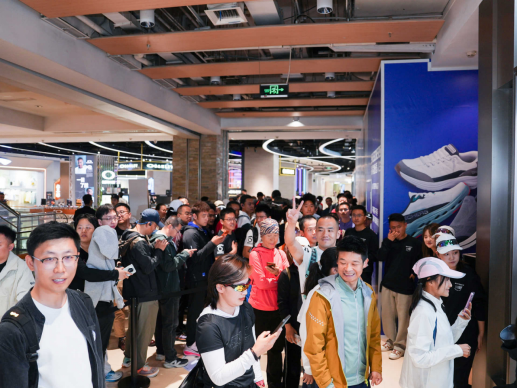 短短半小时内,门店全系列产品陈列区、试穿区、收银台前均排起长队,现场氛围火热。区别于传统运动门店的品类陈列逻辑,马孔多首店首创温度分区陈列体系,划分不同跑步场景的装备陈列,跑者可根据日常跑步的气温与场景,一站式匹配全套穿搭,清晰实用的陈列逻辑收获到场跑者的广泛认可。