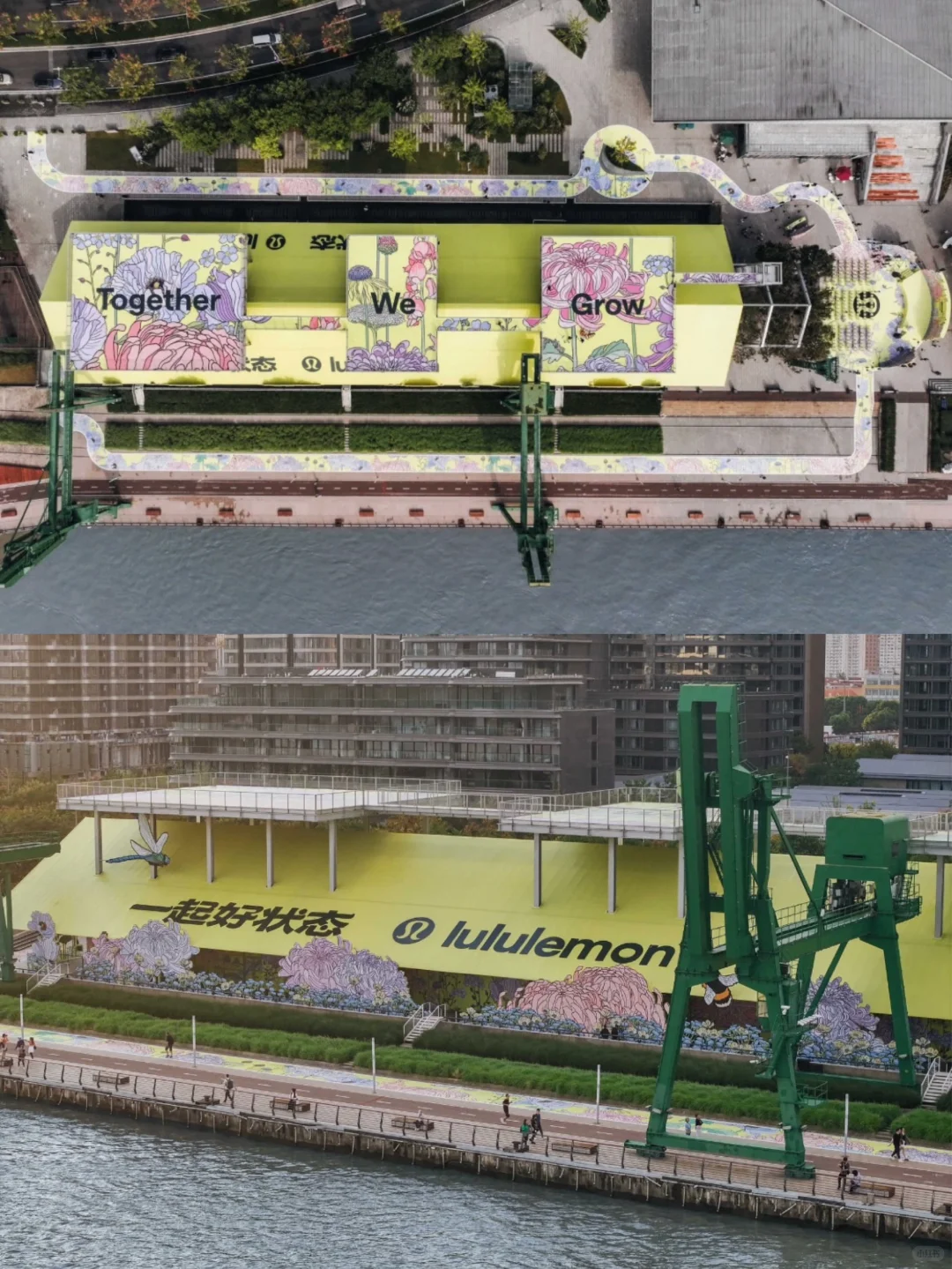 再往前,lululemon与伦敦艺术组合Graphic Rewilding合作打造了「好状态心展花园」。不同空间分别对应不同运动状态,也对应不同花卉象征,把这套植物语言从产品表面的印花,进一步被转化成空间语言,进入体验和互动之中,最后变成一种可以被参与、被感受、也可以共创的品牌社群体验。